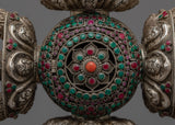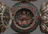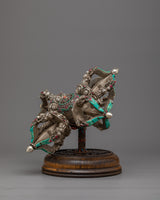 Behold the magnificent Double Vajra with Stand, a work of art in both craftsmanship and spirituality! This exquisite piece is handcrafted with utmost precision on a silver body and adorned with precious gemstones such as coral, Irani stone, and lapiz lazuli, infusing it with a captivating aura. The intricately carved double vajra represents power, stability, and spiritual transformation. The accompanying wooden stand not only adds a touch of elegance but also provides a stable foundation for display. Accept the power and beauty of this sacred artifact, which will propel your spiritual journey to new heights. Stand allows you to experience the profound energy and symbolism of the Double Vajra in your home or sacred space.
