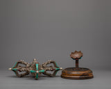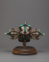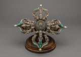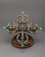 Vishwa Vajra | Double Vajra with Stand | Silver Body with Embedded Stones