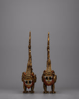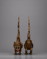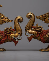 Each statue is skillfully crafted to capture dragons' dynamic and imposing spirit. The intricately crafted copper body is enhanced with a touch of elegance and durability by the electro-gold plating, highlighting the characteristics, scales, and expressions that give these legendary creatures life.