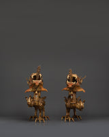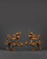These copper and expertly gold-plated statues display a brilliant blend of materials, emphasizing the renowned Chinese dragon's symbolic power. Each piece weighs around 10.59 kg, for a total weight of 21.13 kg, making them substantial additions to your area. The careful design highlights the dragons' mythological spirit, conveying their tremendous energy and dominating presence. Placing these statues together or individually will create a focal point representing guardianship and cultural legacy.