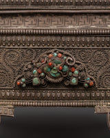 This treasure box, made with painstaking attention to detail, combines traditional metalwork with vivid imitation stones, such as coral and turquoise, to enhance its visual appeal. It weighs 1.09kg and is designed to protect your valuables in a flair while being portable. The elegant combination of silver and natural stones represents the box's spiritual and cultural value, making it an ideal gift or treasured personal item.