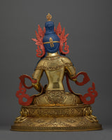 Vajrasattva's elaborate attire and tranquil countenance are accentuated by the superb 24K gold gilding on this handcrafted statue of a copper body. The figure's spiritual impression is enhanced by the richness and vibrancy added by the acrylic and gold paintwork. Its 8.97 kg weight gives it a commanding presence, making it perfect for using as the focal point of any room used for spiritual practice, meditation, or introspection.