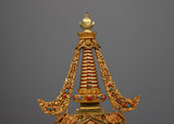 Presenting the Finely Handmade Gold-Plated Traditional Buddhist Stupa embodies Tibetan handicraft's profound spiritual legacy and extraordinary creativity. Crafted from quality Copper and embellished with sophisticated Gold Plating , this magnificent stupa represents the Buddha's awakened mind and is a beacon of knowledge, kindness, and tranquility. The elaborate pattern and excellent finishing reflect the profound cultural and spiritual importance of stupas in Tibetan Buddhism, which are frequently built to honor the Buddha and preserve precious relics.
