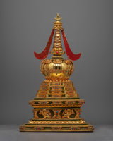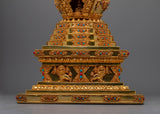 Traditional Buddhist Gold-Plated Stupa | Sacred Stupa for Spiritual Devotion and Elegant Home Decor