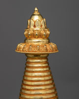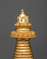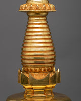 Behold the gleaming Golden Stupa Statue, a true work of art created with love and devotion. Consider this: in front of you is a meticulously handcrafted Copper body gleaming with the richness of 24k Gold Plating .