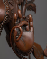Introducing the exquisite Green Tara Female Buddha Statue - a true masterpiece that will bring serenity and beauty to any space. Handcrafted with meticulous attention to detail, this statue features an oxidized copper body, adding a touch of elegance and sophistication. Standing tall at 50 cm, this 11.4kg statue is a symbol of enlightenment and compassion. The Green Tara, known as the "Mother of Liberation," embodies grace and protection, radiating positive energy wherever she is placed. Crafted by skilled artisans, every curve and contour of this statue is carefully sculpted, capturing the essence of the Green Tara's serene expression and compassionate heart. The vibrant green color symbolizes renewal, growth, and harmony - a perfect addition to your meditation corner or sacred space. Elevate your space and immerse yourself in the peaceful presence that this enchanting statue embodies.