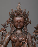 Green Tara Female Buddha Statue | Exquisite Oxidized Copper Body for Serenity and Blessings