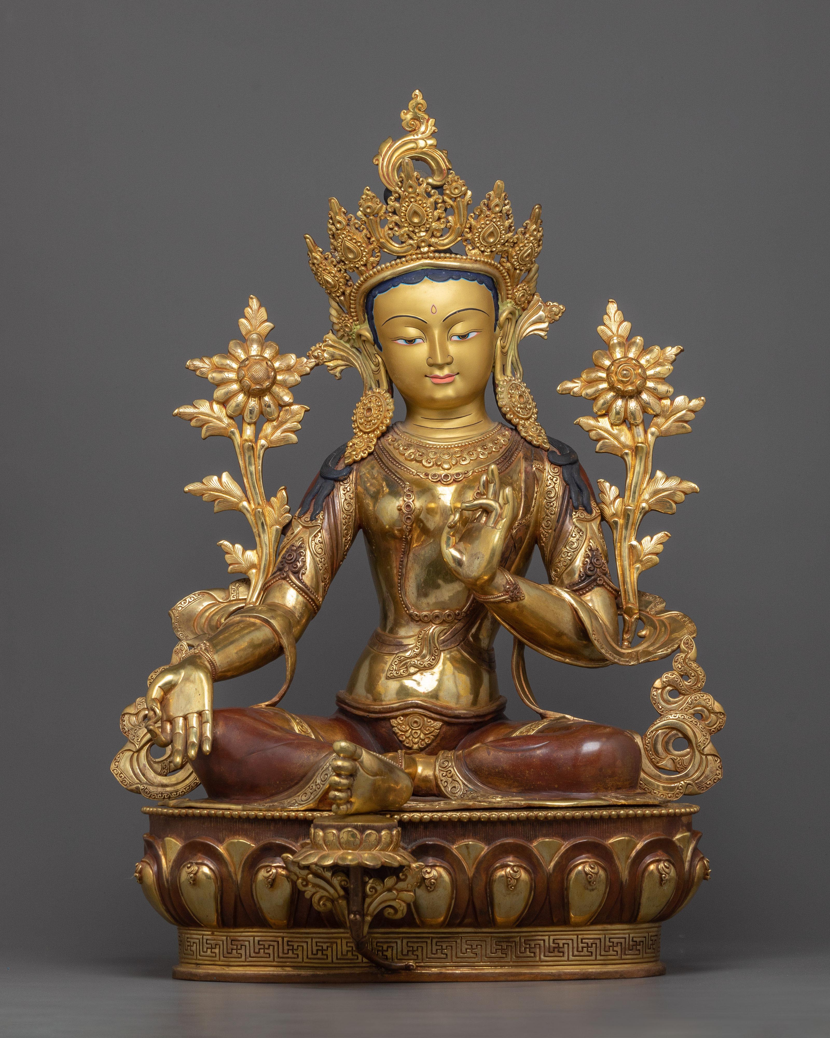 Green Tara Verde Protectora Statue | 24K Gold Gilded Compassionate Guardian