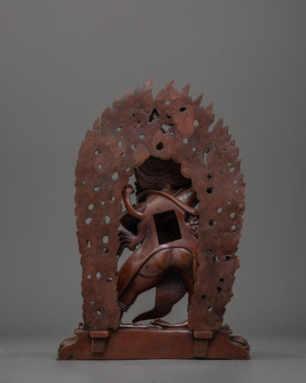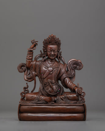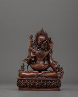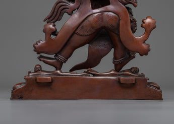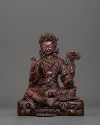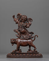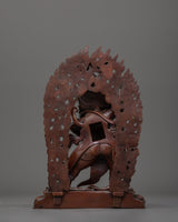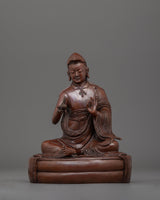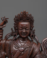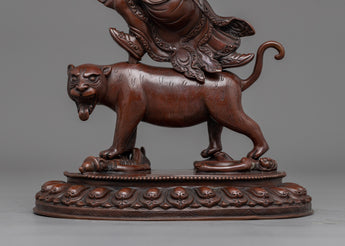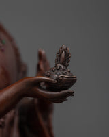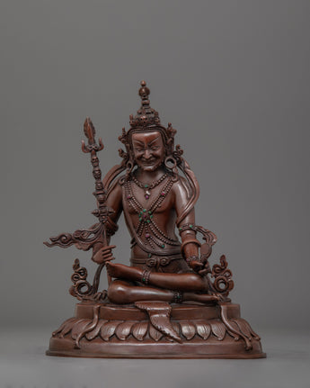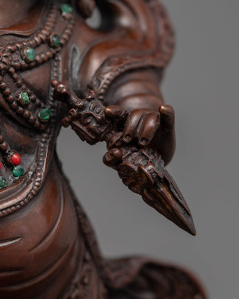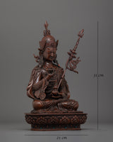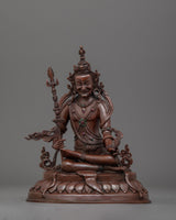 This captivating Guru Rinpoche Eight Manifestation Set, with a height of 12.2 inches and a base width of 8.3 inches, weighs 16.66 kg and embodies Padmasambhava's profound wisdom and strength. Guru Rinpoche, most known for introducing Vajrayana Buddhism to Tibet, has eight forms that symbolize various elements of his enlightened action and spiritual teachings. This set, delicately handcrafted from an oxidized copper body, depicts the spiritual presence of these manifestations, each of which embodies the many attributes required to benefit all living creatures.