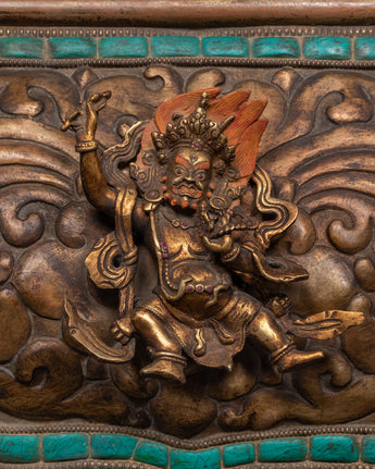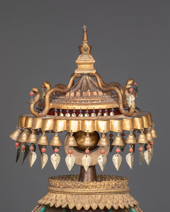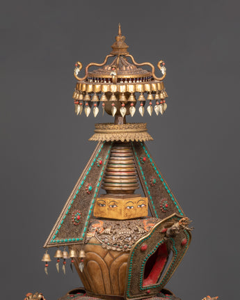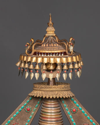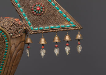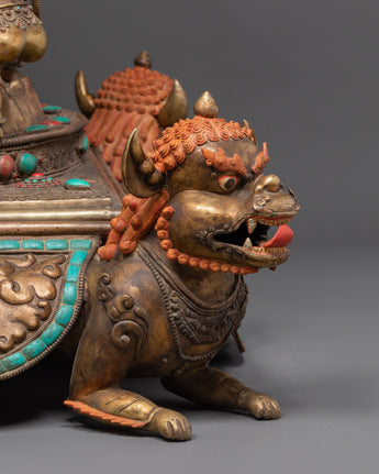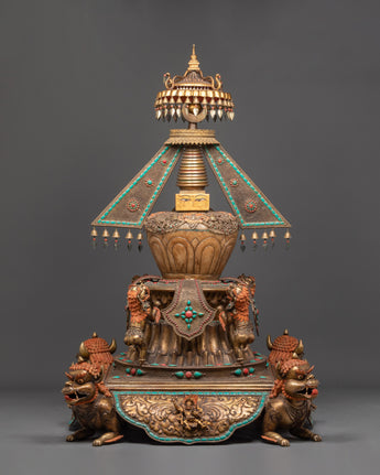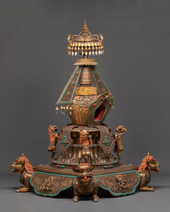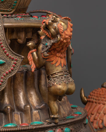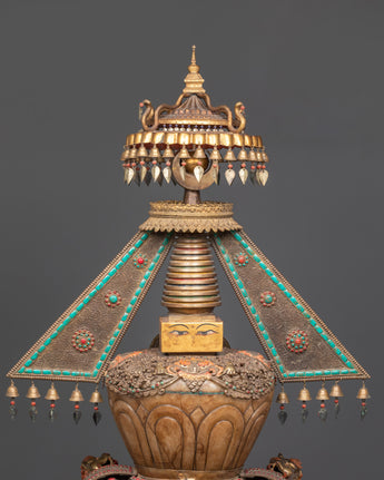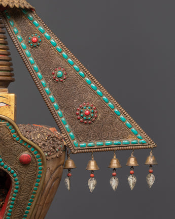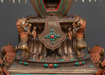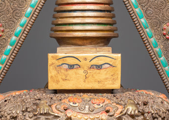 This handcrafted Altar Shrine Stupa is more than simply a gorgeous piece; it's also a potent spiritual tool. Whether utilized for daily offerings, puja ceremonies, or meditation, it serves as a focal point for spiritual practices. The presence of Vajrapani and Garuda in the design provides additional levels of protection and spiritual strength, making it suitable for conquering challenges in one's practice. Placing this stupa on your shrine, altar, or meditation room boosts the energy in your surroundings, attracting positive energy, balance, and tranquility. This stupa is a symbol of protection, wisdom, and divine guidance, ideal for individuals who want to deepen their spiritual path.