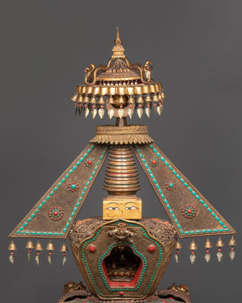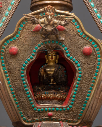 Handcrafted Altar Shrine Stupa | Gold Plated Copper with Buddha