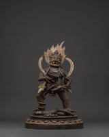 The Black Dzambhala is believed to protect while fostering prosperity by warding off evil energies that hinder material gain and spiritual development. His angry face, seated position, and symbolic features, such as the mongoose spitting jewels, are all depicted in this intricately crafted statue. These are all conventional indications of his function as a wealth-bringer and defender. The combination of copper, brass, and iron gives the composition depth and power while connecting with the energies of abundance, change, and grounding. To capture the powerful vibrational energy of this piece, place it in your Tibetan Buddhist collection, altar, or feng shui area.