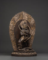 A powerful focal point for spiritual ceremonies, ritual offerings, and meditative visualization exercises designed to help individuals overcome poverty and spiritual challenges is this magnificent, handcrafted Iron Black Dzambhala sculpture. It is a powerful instrument for attracting abundance and warding off negativity due to its commanding presence and traditional imagery, which channels the ferocious compassion of Dzambhala. This powerful statue holds enduring significance as a religious artifact and a representation of both inner and outer wealth, whether you're enhancing your sacred space or deepening your spiritual journey.