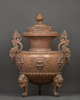 Tibetan Sacred Ritual Item Incense Burner Set | Dragon Handles and Symbolic Detailing