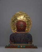 Precious lapis lazuli, turquoise, coral, and conch shell are all set throughout this magnificent bust, each stone thoughtfully positioned to accentuate the piece's spiritual intensity and creative grandeur. These stones are a source of positive energy because they not only accentuate the exquisite design but also represent protection, healing, and serenity.