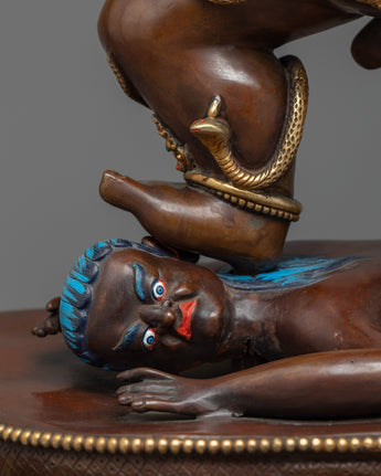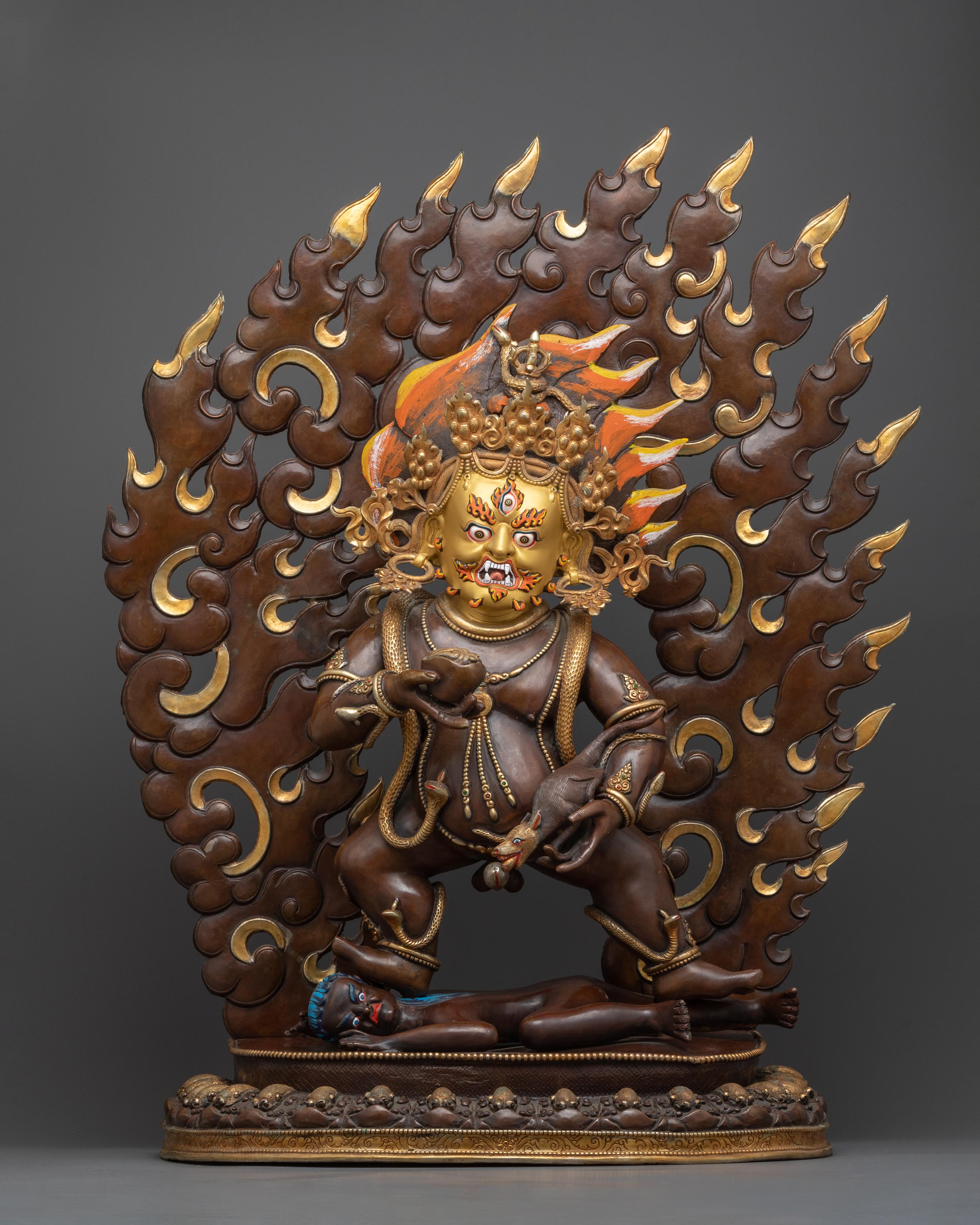 With this Kuber statue for wealth, an epitome of exquisite craftsmanship and artistic grandeur, embark on a magical trip to opulence. The statue is skillfully ornamented in 24k gold gilding, with exquisite details brought to life by brilliant acrylic paintings, and it is built on a foundation of pure copper.