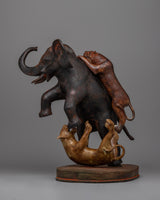 Apart from its striking appearance, this statue has deep symbolic significance. The image of a lion attacking an elephant symbolizes the age-old conflict between strength and weakness, predator and prey, and the delicate balance of the natural world. It is a potent reminder of the harsh realities of the natural world, where survival is frequently threatened by dramatic contests of strength and cunning. As a result, this statue inspires introspective thought about the forces of nature and life rather than merely serving as a decorative object.