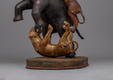 This brass statue is perfect for individuals who value the drama and beauty of nature or for collectors of one-of-a-kind artwork. Its long-lasting shine and brass design make it an excellent complement to any office or home decor. The Lion Attack Elephant Statue, which depicts a fierce battle with amazing beauty and complexity, is a monument to the timeless appeal of nature-inspired art. This statue will enthrall and inspire whether it is used as the focal point or an accent piece.