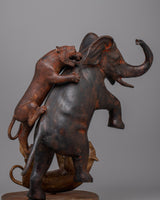 Lion Attack Elephant Statue | Handcrafted Brass Sculpture for Home or Office
