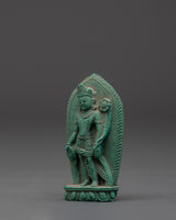 This Lokeshwor Buddhist statue is 7cm in height and 3.5cm in breadth, weighing about 0.018kg. Crafted from Turquoise artificial stone, this statue depicts Lokeshwor, a revered figure in Tibetan Buddhism who embodies compassion and protection. Its elaborate pattern and brilliant blue hue make it an excellent choice for any altar, meditation place, or spiritual collection.