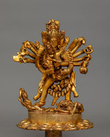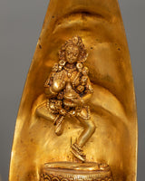 This exquisite item contains a gorgeous lotus, expertly fashioned to resemble a closed bud. When the lotus softly opens, it exposes a celestial Heruka at the center, surrounded by eight other deities exquisitely engraved into the petals. The complexity of the design emphasizes the piece's spiritual character, with each god lovingly carved and set within the flower structure. The flower's petals lay on a double-petal lotus base, with turquoise stones in the middle to add brightness to the item while representing spiritual wisdom and purity.