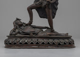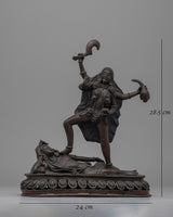The statue displays a standing Mahakali statue that weighs 2.99 kg and is made of oxidized copper. Its dimensions are 28.5 cm in height and 24 cm in breadth. The Hindu goddess Mahakali, who is adored for her ferocious and transformational nature and is frequently connected to the annihilation of evil and defense against hostile forces, is shown in this exquisitely made statue.