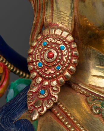 The statue is made of sturdy copper and has a 24k gold finish that highlights the delicate intricacies and acrylic paintings. The statue's smooth curves, sophisticated design, and bright aura make it a work of art as well as a spiritual symbol.