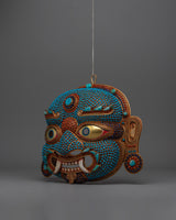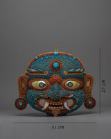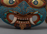 Perfectly made by hand to represent the protective spirit of Nepali Lakhe Mask, a revered demon deity in Nepali folklore, the Nepali Lakhe Mask is an incredible sign of traditional cultural . As the mask's body is made of copper, it has an ageless appeal reflecting the region's historical past. This piece has amazing attention to detail, with the mask's eyes, which are delicately plated in gold, providing a focal point that reflects Lakhe's rough and alert character. The other part of the mask is electroplated in gold, providing a shiny stunning shimmer that elevates its entire appearance to one of wealth.