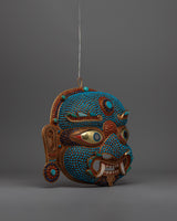 Authentic Nepali Lakhe Mask – Traditional Symbols and Vibrant Artistic Expression