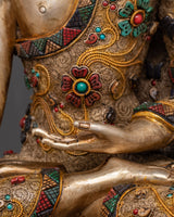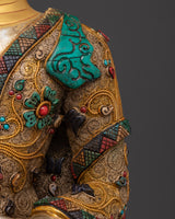 With a weight of 12.21kg, this statue serves as a powerful symbol of good energy and healing. Its painstaking detailing, from the carefully wrought filigree work to the gold and silver accents, emphasizes its divine importance. This Medicine Buddha statue is ideal for collectors of Buddhist relics or anybody wishing to improve their spiritual practice. It serves as a reminder of the healing power of kindness and awareness. Elevate your area with this precious work of art, which provides both aesthetic and spiritual value.