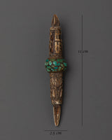 Phurbas have long been utilized in Tibetan ceremonies to remove barriers, provide protection, and energize spiritual acts. The combination of buffalo bone and turquoise improves the grounding and healing powers. The Phurba's carved symbols represent power, change, and protection, making it a valuable addition to any altar or meditation room.