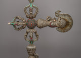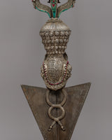 Silver Buddhist Phurba with Curved Knife Precious Stones for Spiritual Protection