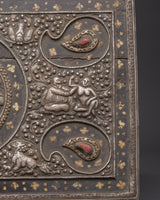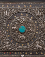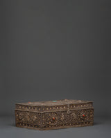 The Pure Silver Treasure Box with Coral & Turquoise is a stunning decorative storage piece that combines traditional Tibetan artistry with practical use. Featuring a brass body adorned with detailed silverwork and vibrant coral and turquoise inlays, this box adds a unique, exotic touch to your home or sacred space. Its generous dimensions of 38.5cm in height and 37.5cm in width offer ample room for storing jewelry, keepsakes, or spiritual treasures safely. Beyond its functionality, this treasure box serves as a captivating conversation starter and a symbol of refined craftsmanship, perfect for those who appreciate both beauty and utility.