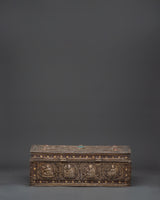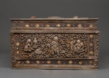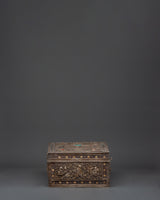 The coral and turquoise inlays on this treasure box are expertly placed, bringing brilliant hues and energy into your house. The box's exquisite craftsmanship, along with the sumptuous feel of brass, heightens its everlasting appeal. Whether utilized for storage or as a decorative accent, this treasure box is a striking focal point in living rooms, bedrooms, or spiritual areas.