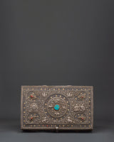 Tibetan Pure Silver Treasure Box with Coral & Turquoise | Artist Craftsmanship