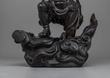 The statue's dark copper finish adds to its ancient, mythological allure, while delicate touches of finishes give it a timeless, aged appearance. The intricate details, from Raijin's muscular muscles to the whirling sky, demonstrate great artistry. This stunning depiction of Raijin is not only a testament to his terrifying character in Japanese mythology, but it is also a breathtaking work of art that captures the awe-inspiring power of nature.