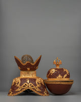 The Kapala, which represents impermanence and commitment to greater wisdom, symbolizes spiritual development in Tibetan Buddhist teachings. This exquisite, handcrafted set is perfect for monasteries, meditation areas, and collectors looking for genuine Buddhist history. This Kapala set is an adequate representation of spiritual commitment and enlightenment, whether it is employed in ceremonial rituals or is on display as a sacred artifact.