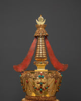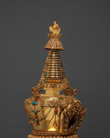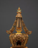 Ritual Stupa for Shrine | Gold Plated Copper Buddhist Stupa