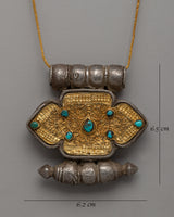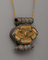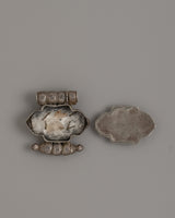 The Ghau box, also known as a prayer box, is traditionally used in Tibetan Buddhism to house precious relics, mantras, or prayers, acting as a personal amulet and a spiritual protector. This pendant has beautiful engravings and flower designs that represent harmony and attentiveness. It's lightweight and intricately made, making it an ideal meditation item or a thoughtful present for anybody on a spiritual journey.