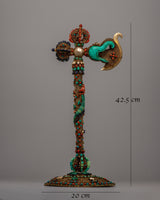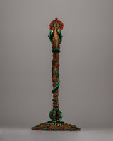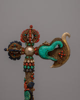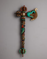 In Tibetan Buddhist ceremonies and rituals, this axe has great symbolic meaning. It is frequently employed as a ritual tool that symbolizes strength, protection, and the capacity to conquer difficulties. Its inclusion in religious rituals is a reflection of the conviction that it has the power to call forth heavenly favor and drive out evil spirits. Additionally, adding holy jewels to a design adds levels of spiritual depth; each stone is thought to have special qualities for wisdom, healing, and spiritual development.