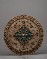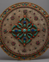 Introducing our Silver Mandala Wall Hanging Decor, the height of style and devotion. This fantastic piece, handcrafted from pure silver with 2% copper for longevity, is a true masterwork of artistry and skill. This mandala is adorned with carefully inlaid lapis lazuli, turquoise, coral, and Panna stones, signifying transcendence and divine beauty.