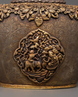 The dragon handle represents power, strength, and change, making it ideal for tea ceremonies and a decorative item in your house. This elaborate design has a finely crafted dragon handle, which adds a magnificent and spiritual element. The teapot's body is carved with floral designs, which indicate growth and life, while the figure of a monk on an elephant with a bird denotes knowledge, power, and independence in Tibetan culture. This teapot is ideal for use and exhibition, adding a royal touch to any collection.