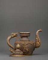 Elegant Tea Pot with Dragon Handle | Copper, Silver, and Gold Plated for Ceremonial Use