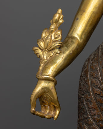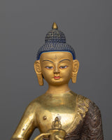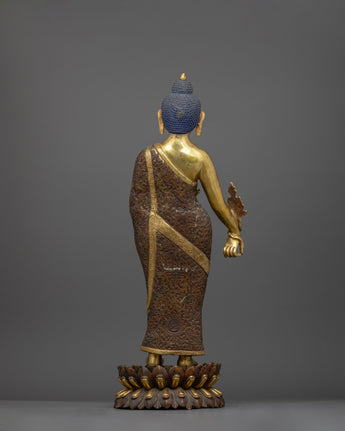 Medicine Buddha, also known as Bhaishajyaguru in Sanskrit, is regarded as the Buddha of Healing. His teachings aim to free sentient beings from sickness, pain, anguish, and unhappiness while also emphasizing the need to acquire prosperity and enjoyment in this life. Many meditators in the Mahayana tradition admire his healing abilities. He is frequently shown with a blue (lapis lazuli) body and hands carrying a begging bowl and medical herbs.