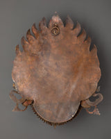 This Tibetan wall hanging mask also has exquisite embellishments such as huge ears, elegant earrings, and a dramatic five-skull crown, representing the transcendence of negative emotions and the mastery of the five poisons in Buddhism. The distinctive design combines scary expression with sacred meaning, making it an effective item for Buddhist altar decor, spiritual wall art, or a striking statement in any meditation or yoga area. Whether you're a collector of Tibetan antiquities or simply looking for a significant and artistically magnificent Buddhist mask, this piece adds protection, transformation, and spiritual depth to your house. It's more than merely a decorative item; it's a spiritual protector and conversation piece with a rich history and energy.