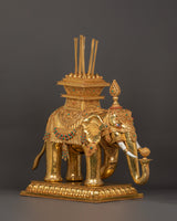 Tibetan Elephant Set Statue | Gold-Plated Brass Elephant Pair for Decor