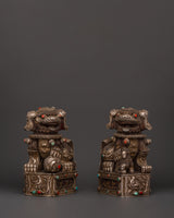 Tibetan Snow Lion Statue Set | Spiritual Decor with Antique Finish