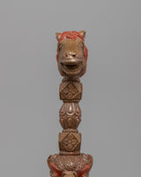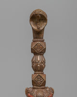 This Phurba set is regarded in Vajrayana rituals as a tool for expressing the incredible energies of wrathful compassion, instead of being a weapon. It is utilized to safeguard and consecrate sacred space, controlling negativity and establishing a boundary for focused meditation and blessings. This Phurba evokes the presence of Vajrakilaya, bringing together technique (compassion) and wisdom, embodying non-dual awareness, and assisting practitioners on their path to enlightenment.