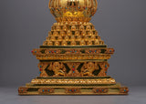 Presenting the Tibetan Shrine Stupa, an exquisitely developed object that perfectly captures the spiritual legacy and extraordinary creativity of Tibetan handicraft. Crafted from fine Copper and embellished with sophisticated Gold Plating , this stupa represents the body, speech, and mind of the Buddha and is used as a sign of enlightenment. As monuments to honor the Buddha and contain holy relics, stupas have great cultural and spiritual significance in Tibetan Buddhism, which is reflected in their exquisite design and craftsmanship.