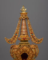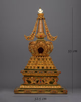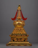 Tibetan Shrine Stupa | Gold Plated Traditional Buddhist Chorten for Meditation and Offerings